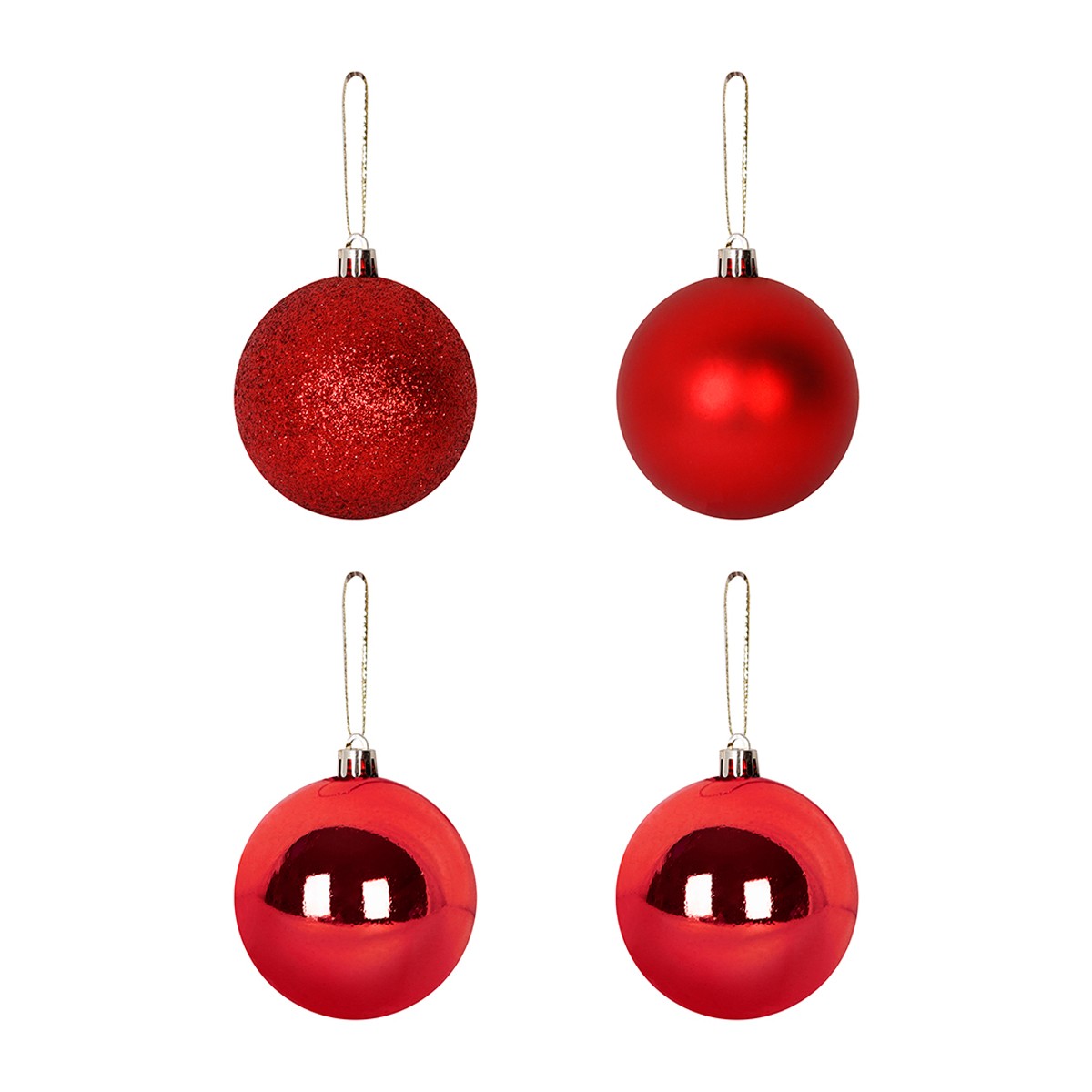 O conjunto de Bolas Lisas Vermelhas da marca ATEF, com 5 cm de diâmetro, é perfeito para adicionar um toque clássico e vibrante à sua decoração de Natal. Cada embalagem contém 4 bolas com acabamento liso e brilhante na cor vermelha.
