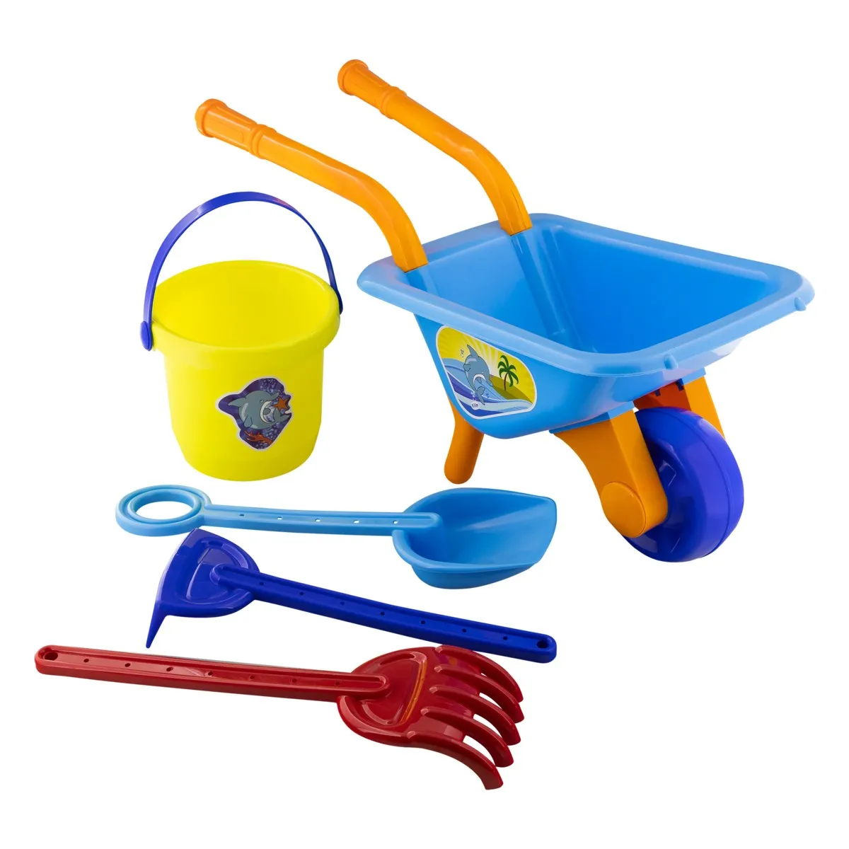 Material Durável e Seguro: Fabricada em plástico resistente, a carriola e seus acessórios são feitos para suportar o uso frequente em ambientes externos, como areia e água. O material é seguro, atóxico e fácil de limpar, garantindo a durabilidade do brinquedo.