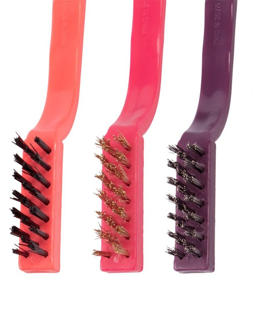 O Kit de Escovas para Limpeza Pesada da Noviça é indicado para a remoção de sujeiras e gorduras impregnadas, de maneira fácil e rápida. O conjunto é composto por 3 escovas: de cerdas de aço (cor berinjela), a de cerdas metálicas (cor cereja) e a de cerdas em nylon (cor coral). Cada uma é para um diferente tipo de sujeira. Escova de Aço: altamente abrasiva, possui cerdas em aço, ideais para auxiliar na remoção de ferrugem. Escova Metálica: altamente resistente, possui cerdas metálicas, ideais para limpeza pesada de grelhas. Escova de Nylon: altamente maleáveis, as cerdas em nylon são ideais para auxiliar na remoção de gordura incrustada.