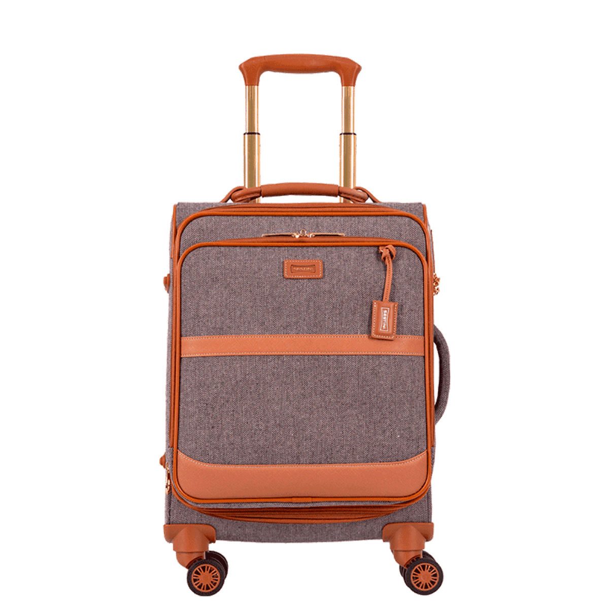 Com dimensões de 55 cm (altura) x 35 cm (largura) x 22 cm (profundidade), peso de 3 kg e capacidade expansível até 45 L (+5 L), possui interior com divisória, bolso em tela e elástico para organização eficiente. Ideal para cabines aéreas, une estilo premium com detalhes refinados como alças em couro e zíper marrom.