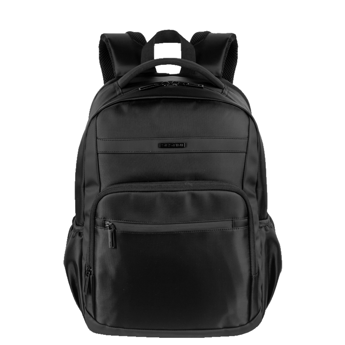 Conta com dois compartimentos principais, sendo um acolchoado para notebooks de até 15,6 polegadas, garantindo segurança contra impactos. Possui bolso frontal com zíper, bolsos laterais em tela com elástico para garrafas e bolso escondido para itens de valor, além de um bolso de acesso rápido para objetos que precisam estar sempre à mão.