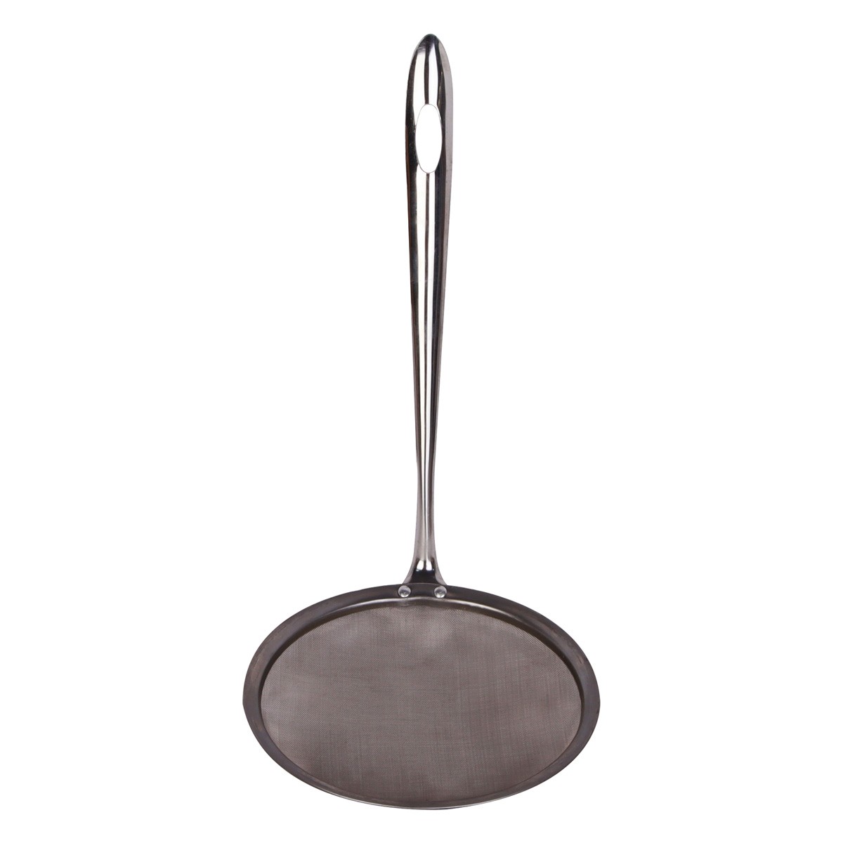 Este é uma peneira para fritura com 12cm de diâmetro, da marca ATEF, identificada pelo EAN 7899658434465. Fabricada em metal (provavelmente aço inoxidável), é um utensílio prático para remover alimentos fritos do óleo quente. O material do cabo não foi especificado nas informações encontradas.