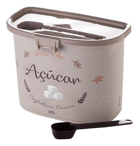 Porta Açúcar 2,3 Litros Plasútil Com Colher 6143 - Plasutil O Porta Açúcar Plasútil é perfeito para quem gosta de economizar espaço no armário, pois acompanha uma colher medidora para auxiliar no preparo. É fabricado inteiramente em polipropileno (PP) livre de BPA (BPA Free), combinando com qualquer cozinha com seu design e estampa clean. O Porta Açúcar Plasútil possui uma escrita indicativa do conteúdo interno na parte frontal do pote, além de contar com uma tampa fixa com trava e uma cavidade para guardar a colher medidora junto ao pote. Especificações Técnicas Material de fabricação: polipropileno BPA Free; Tipo de pote: para açúcar; Com colher medidora; Com tampa fixa e trava; Medidas (Comprimento X Largura X Altura): 22,5 X 13,5 X 16,8 cm; Volume aproximado do pote: 2,3L; Não é recomendável utiliza-lo em lava-louças nem no micro-ondas. Conteúdo da Embalagem Porta Açúcar 2,3 Litros Plasútil Com Colher 6143. Todas as informações acima são especificadas de acordo com o fabricante. Fotos meramente ilustrativas.